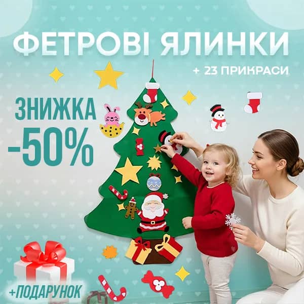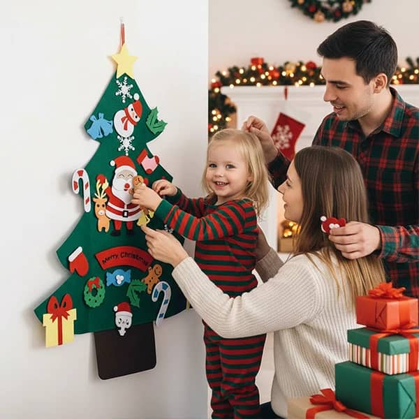 Фетрова ялинка дозволяє створити власну магію свята прямо вдома. Ваша дитина із задоволенням обирає прикраси, а ви розділяєте з нею цей творчий процес.